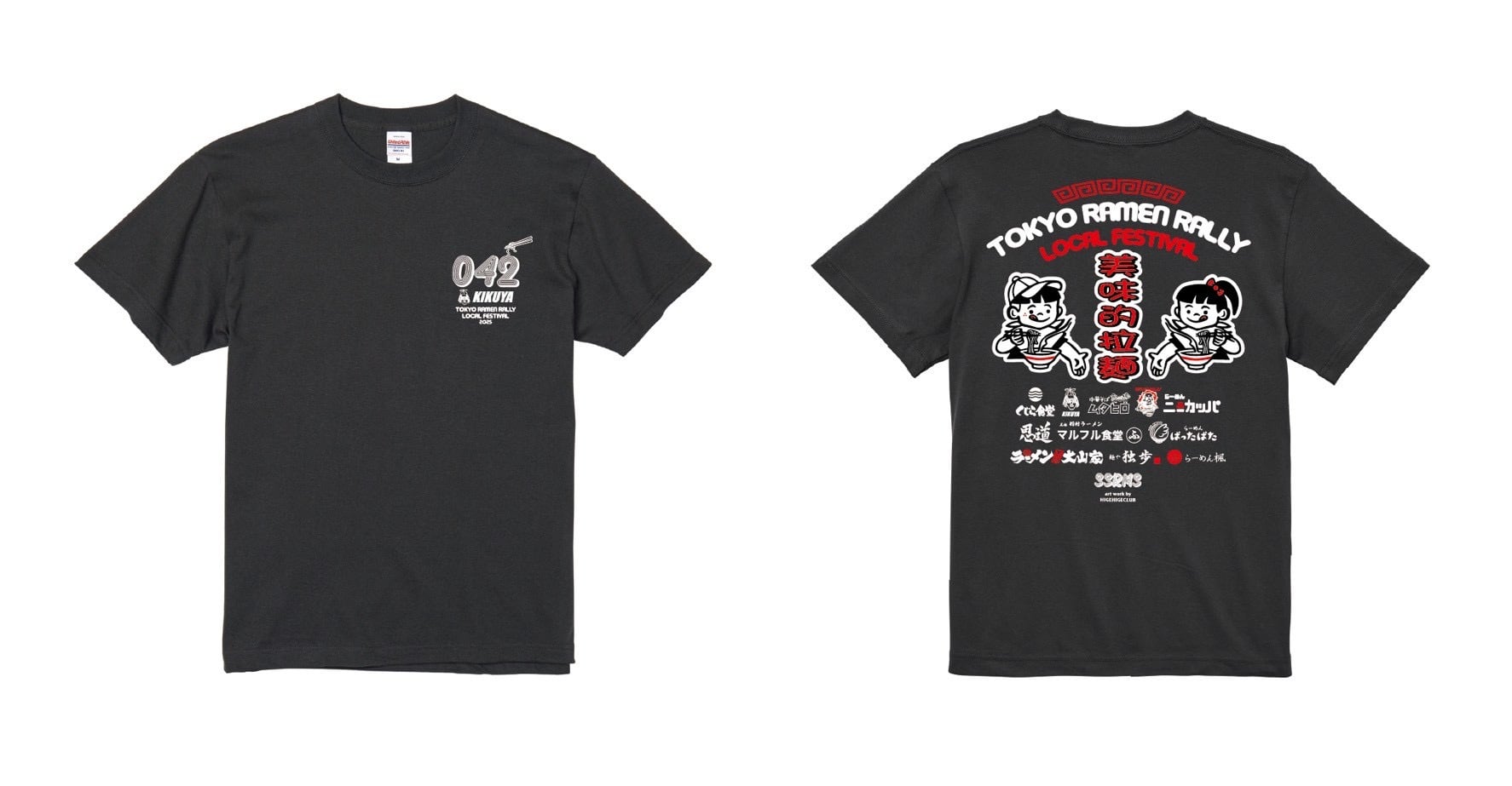 ラーメンラリーロゴ&参加店舗ロゴが入った完全受注生産のTシャツです。
